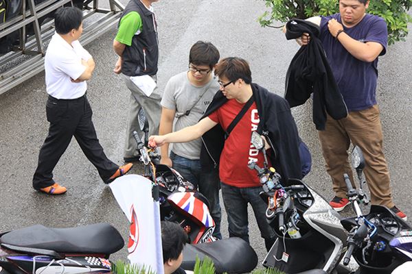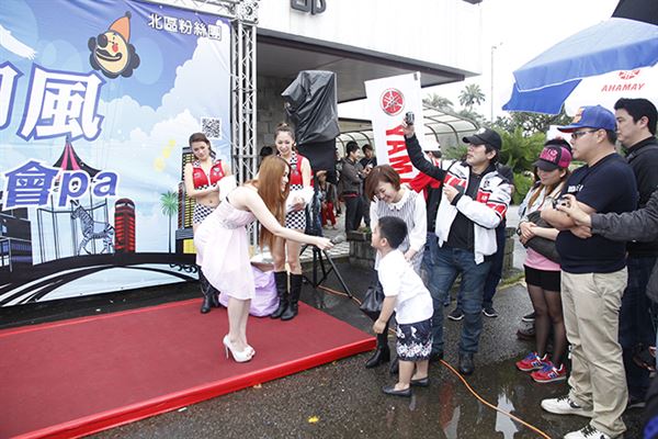 雨勢暫歇後現場第一階段的活動就馬上展開,主持人搭配Show Girl的熱情攻勢讓應該已經濕冷身軀的車友們立刻恢復動力,爭相搶著回答問題拿取贈品,接著細心的主辦單位還為了當月生日的壽星舉辦慶生活動,這些幸運兒也收到了廠商精心準備的生日禮物,臉上喜悅難以隱藏,雖然慶生活動結束後又下起大雨,不過剛剛好也到了用餐時間讓大家稍作休息等待下午的節目。