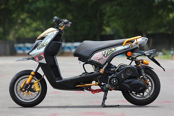 熱血年輕人們不停地追求更高水平的速度享受,因此國內開始出現開發「機械增壓」的廠商。「機械增壓」有什麼效用?簡單的來說就是將經過增壓器壓縮後的濃縮空氣打入節流閥中增強燃燒效果,藉此來提升爆炸能量。在同樣CC數的情況下,安裝了增壓系統的這輛BWS更能確實有效利用缸內容積,榨出更高馬力以及扭力。為了適應這強化過的動力輸出,安全、穩定性方面就必須改善了,FRANDO幅射卡鉗配上加大碟盤,可讓安全得到更好的保證,而K1可調式後避震以及強化吊架則提供了不少穩定性。只有如此配備才能使這輛增壓怪獸自在地奔馳於道路上!