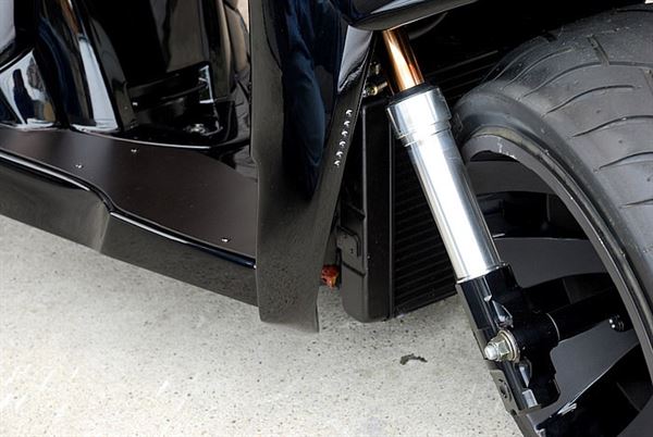 換上水冷引擎的話一定要有水箱,水箱巧妙地與車身融合在一起