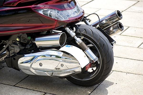 拉長33cm的車軸距讓半顆輪胎已經露在車身外,單側雙出式的尾管更是大家的最愛