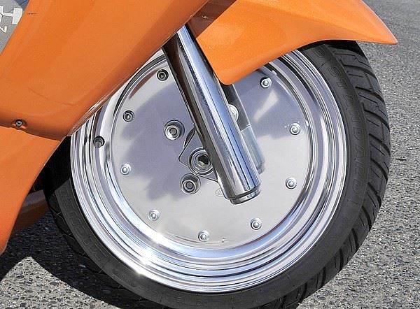 復古的實心輪框採用的是拋光金屬配件,也是相當具有特色的一個方式