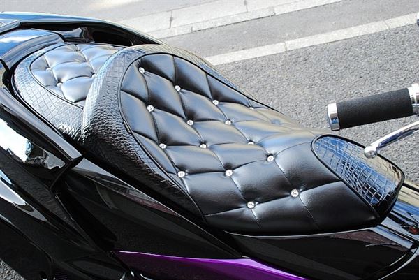 亮皮菱形格紋座墊以鱷魚皮紋度做點綴,豪華的座墊和亮麗的車身相得益彰