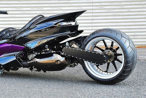 使用許多電鍍零件打造出閃亮車身氛圍,利用300的超寬胎來吸引注目度