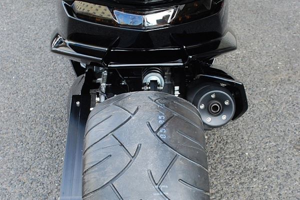 超長的軸距給人視覺上的衝擊,排氣管等後輪設計上有著狂野的姿態