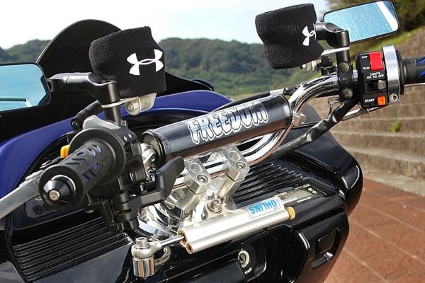 龍頭下面加裝OHLINS的防甩頭,還有從FZR750R來的按鈕盒