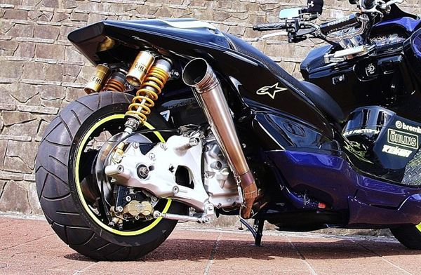 完整移植GSX1300隼的車頭,車尾則採用YZF-R1,將大型重機的運動氛圍完整移植到速克達上