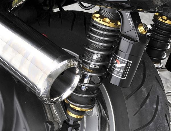 掛瓶式的雙槍避震也是增加操控性時不可或缺的零件