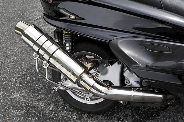 角度向上提升的排氣管採用拋光金屬材質,外觀上也有著絕佳的平衡性
