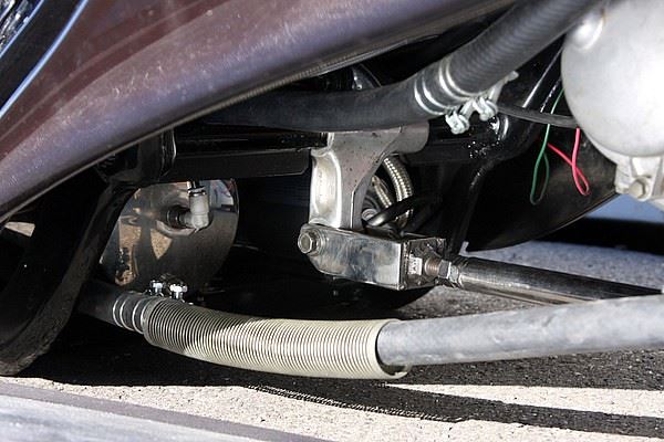 使用多連桿的方式延伸車架,達到拉長軸距和降低車身的效果