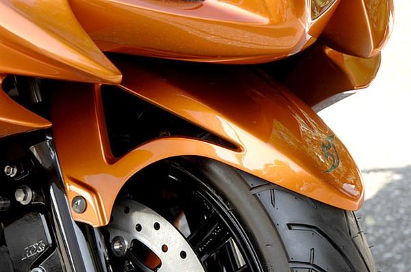 使用顯眼的亮橘色塗裝帶來與眾不同的氛圍,並且利用導流罩打造出特別的外型