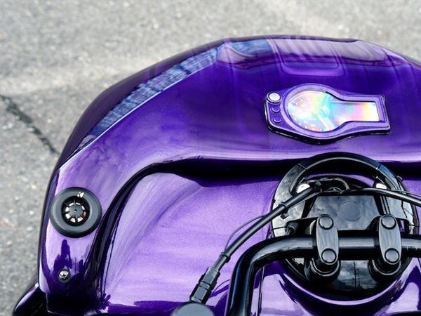 紫色塑膠的座墊提升了整台車的一體感