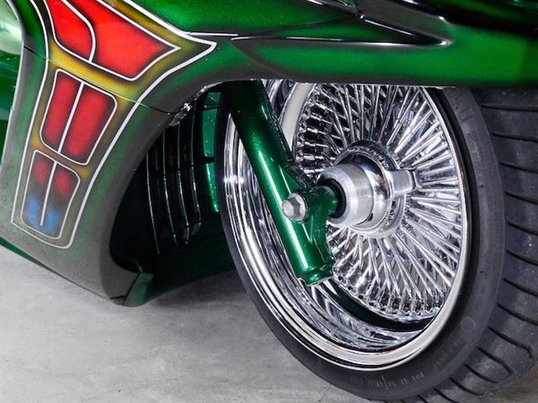 採用流行的低座高&長軸距的改裝方式,塗裝選用油亮的綠色搭配花俏的紋路
