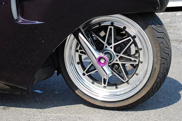 刻意向下安裝的前叉讓車高降低,八芒星的輪框也有著圖特的氛圍