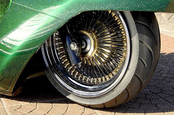 前輪使用的是存在感極大的14鋼絲框,巧妙地使用三種顏色互相搭配