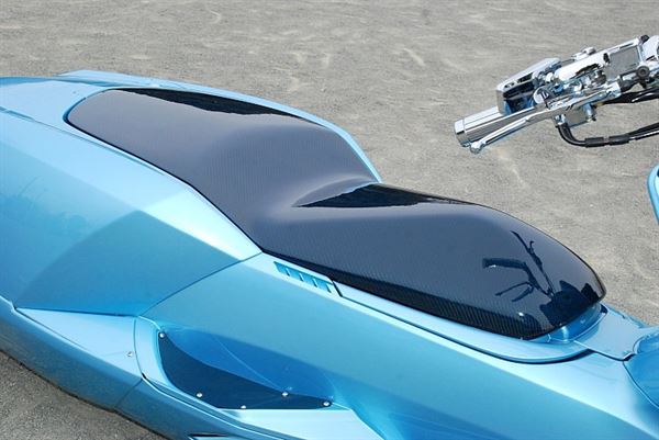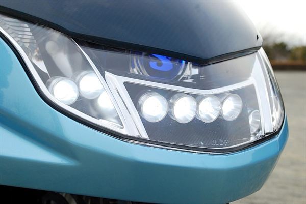 採用天藍色的碳纖維車殼,降低車身和拉長軸距吸引許多目光