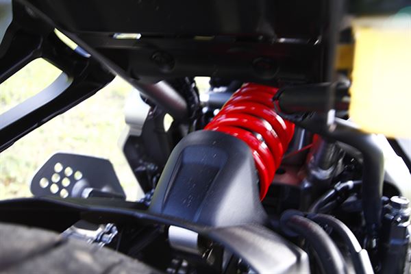 偏向右邊的側置單槍後避震,過彎時不容易軟腳