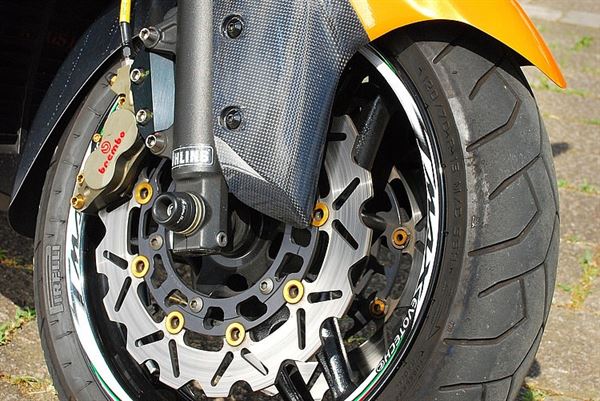 大量採用碳纖維製品帶給人視覺上的衝擊,並且換上OHLINS的避震,不計成本的改裝方式