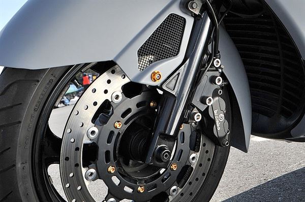 300mm的大口徑碟盤和BREMBO的煞車卡前提高制動力輸出
