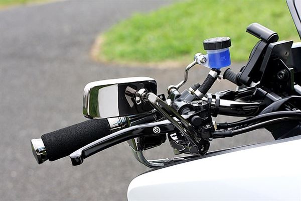 BREMBO制的煞車總泵,特殊的藍色煞車油也相當有特色