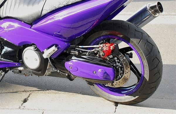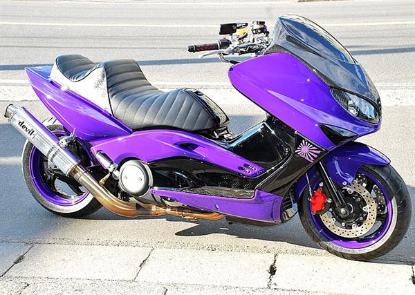 採用紫色的塗裝吸引注意,捨棄了操控性能至上的TMAX改裝王道