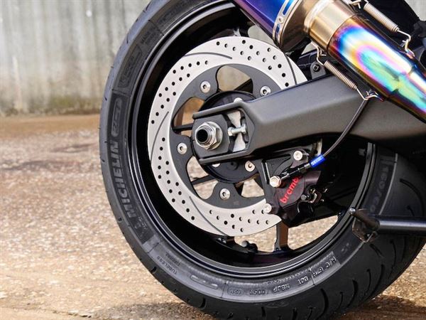 輪後輪框採用具有絕佳人氣的GP-TEN,卡鉗也換上BREMBO的產品,提升了操控性