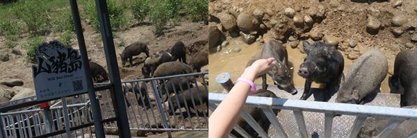 山豬島上的野豬聽到放飯音樂就會自動在碼頭旁聚集,