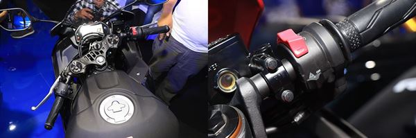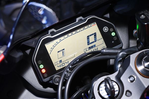 接下來我們從騎士介面的第一人稱視角觀察,除了剛才提到因為手把下移而使得上三角台完整裸露、充滿戰鬥氣息,同時風鏡也更貼合戰鬥騎乘時的機能之外,外觀上最明顯的差異便是儀表改為全液晶的設計,整體上各項功能仍與舊款相差無幾,不過仔細看便能發現方向燈由原本無論哪邊都是亮同一顆警示燈的設計改為左右有別,可以發現右把手總成上多了雙黃警示燈的開關,舊款就沒有這樣的設定,算是一個增加日常騎乘安全性的實用配備,同時斷電開關等也改為類似MT07、09的設計。